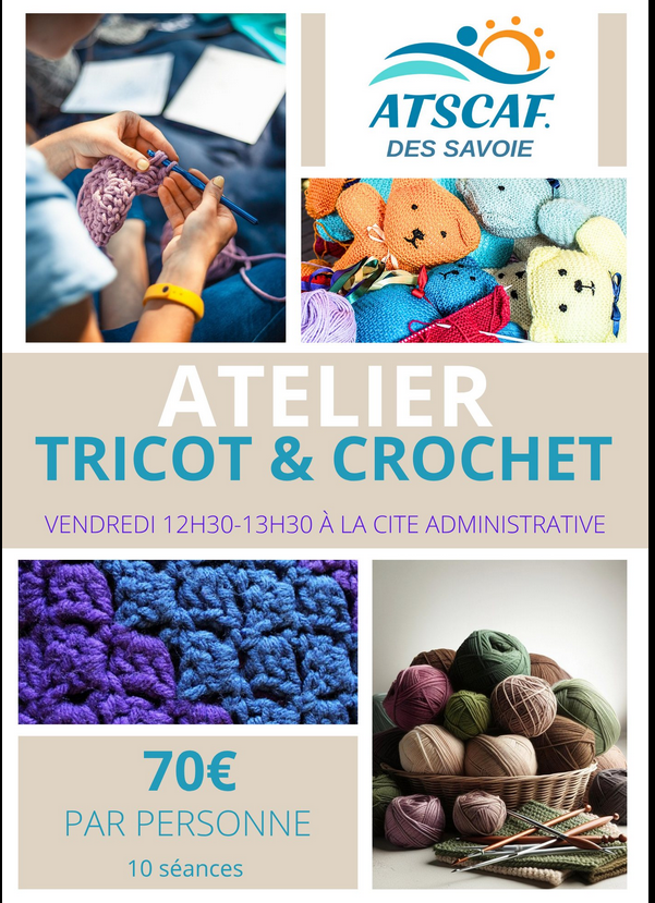10 séances (5 séances de tricot et 5 séances de crochet)