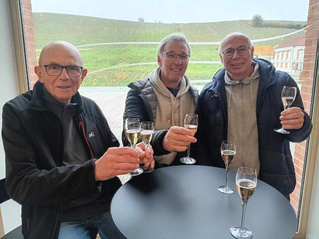 Le trio s'est offert la visite du musée du champagne, le Pressoria, clôturée par une dégustation de 2 champagnes, avec les côteaux en toile de fond. Bonne dégustation à l'équipe !