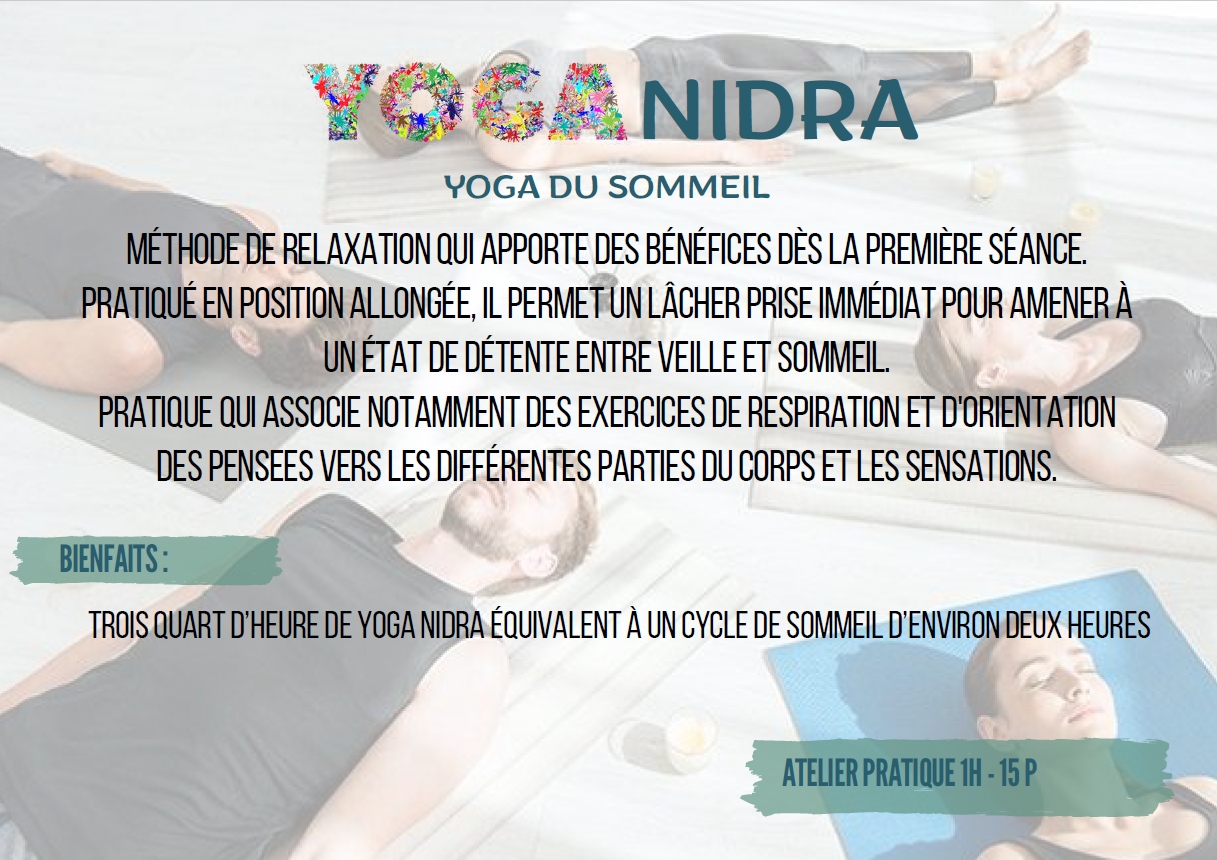 - Séance de Yoga Nidra de 45 min qui équivaut à un cycle de sommeil d'environ 2h détail