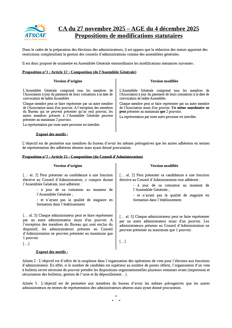Cliquer sur ce lien pour ouvrir la version pdf de la proposition de réforme des statuts (AGE)